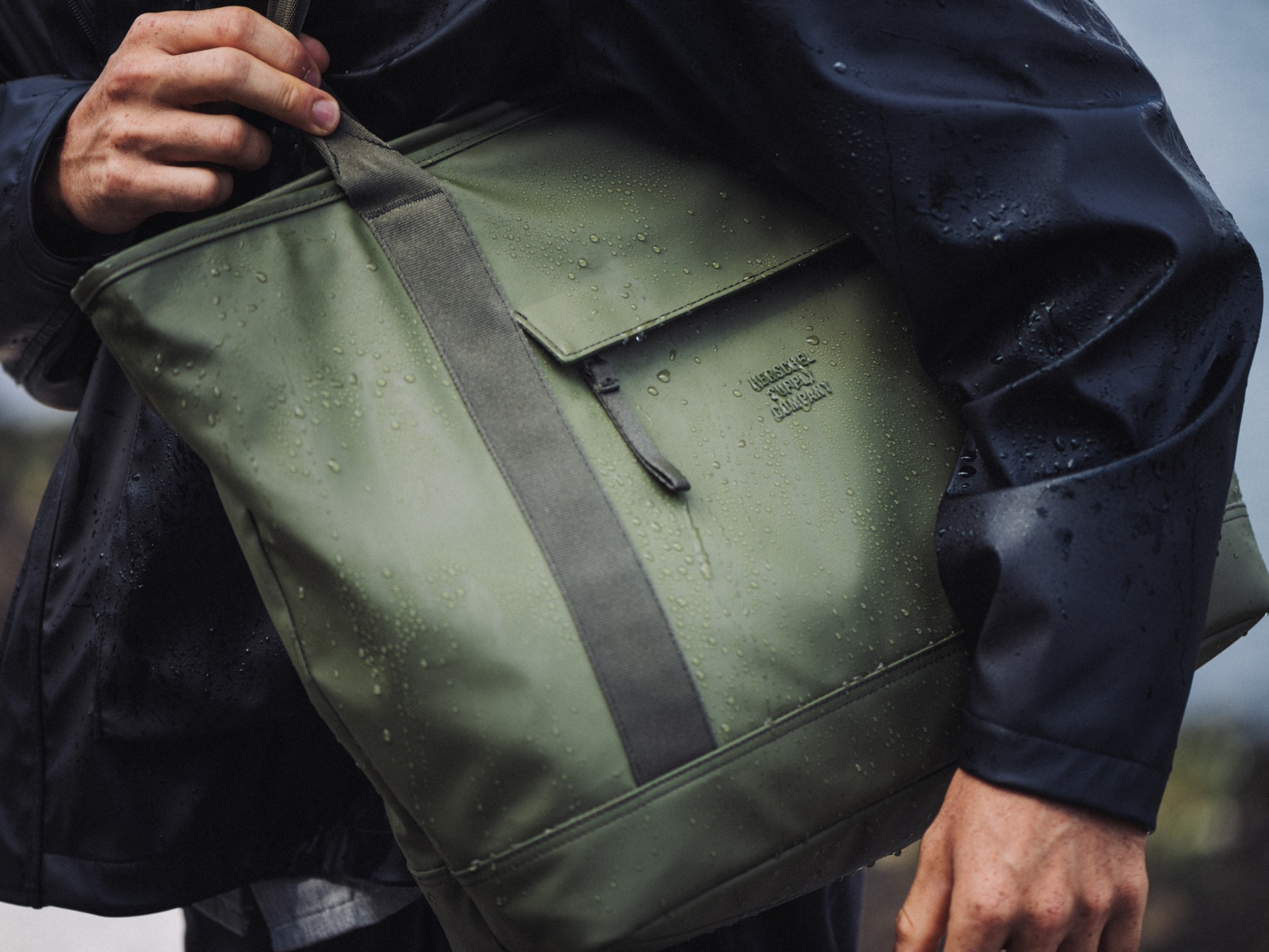 We know rain. Constructed with a matte coating, the Alberni Tote is inspired by rainy commutes in Vancouver, BC. It is designed to fit everything you need. It features a zippered front pocket, spacious main compartment, internal pockets and a storage sleeve for your water bottle. For longer trips, attach it to your luggage using the zippered trolley sleeve.
